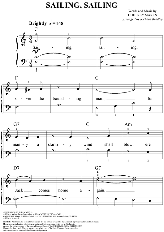 Digital Sheet Music for Sailing, Sailing by Richard Bradley, Godfrey Marks scored for Easy Piano/Vocal; id:285583