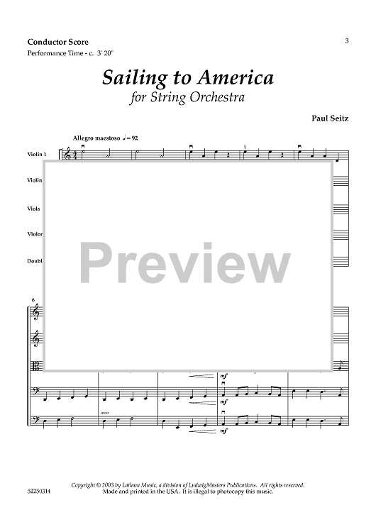 Digital Sheet Music for Sailing to America - Score by Paul Seitz scored for String Orchestra; id:458499