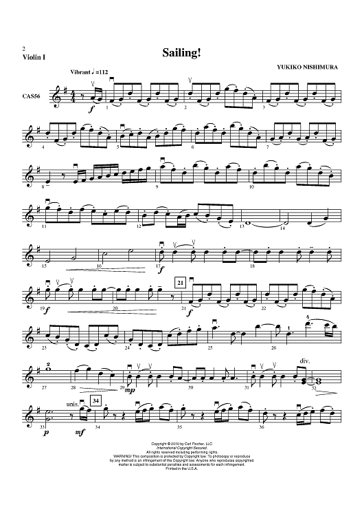 "Sailing! - Violin 1" Sheet Music by Yukiko Nishimura