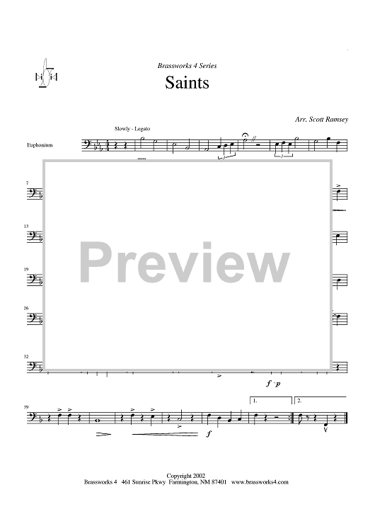 Digital Sheet Music for Saints - Euphonium by Scott A. Ramsey scored for Brass Quartet; id:316854