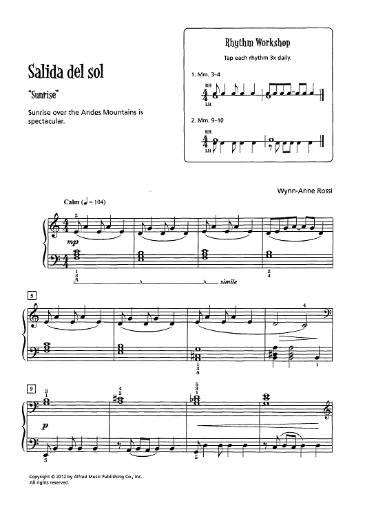 Digital Sheet Music for Salida del sol ("Sunrise") by Wynn-Anne Rossi scored for Piano; id:449405