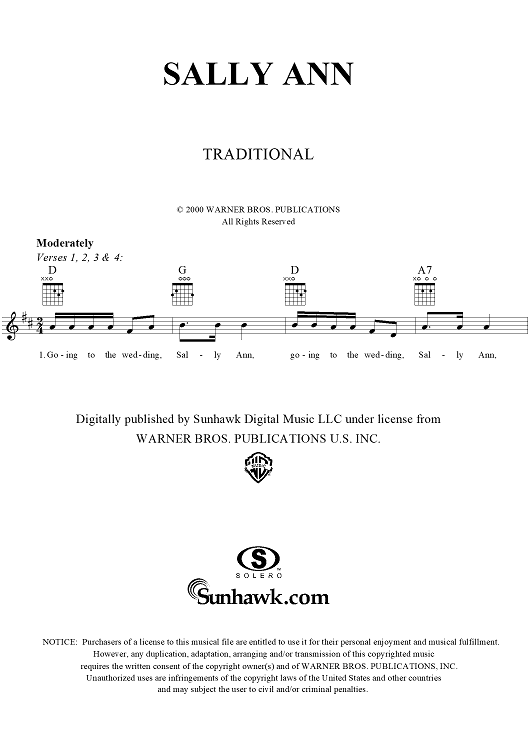 Digital Sheet Music for Sally Ann by Traditional scored for Lead Sheet; id:292629