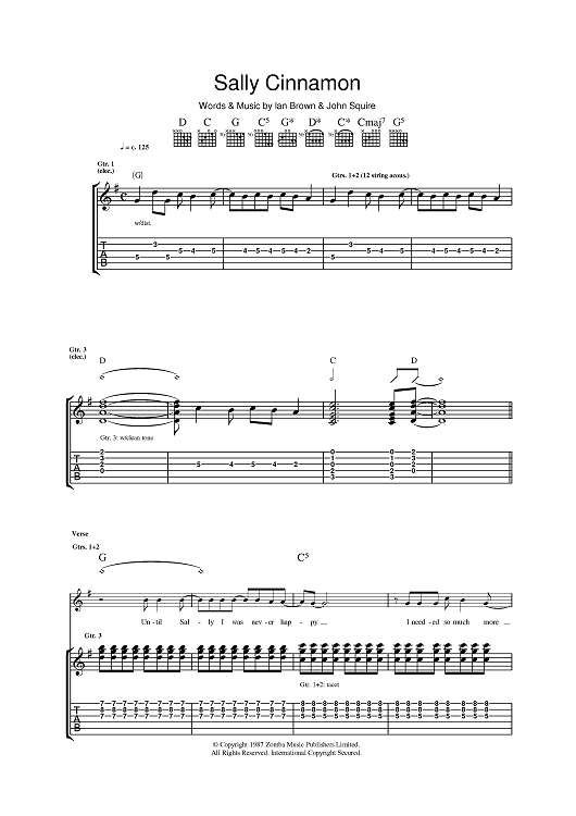 Digital Sheet Music for Sally Cinnamon by Ian Brown, John Squire, The Stone Roses scored for Guitar Tab; id:396197