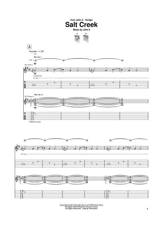 Digital Sheet Music for Salt Creek by John 5 scored for Guitar Tab; id:381040