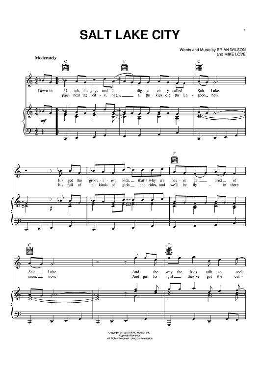Digital Sheet Music for Salt Lake City by Brian Wilson, The Beach Boys, Mike Love scored for Piano/Vocal/Chords; id:370473
