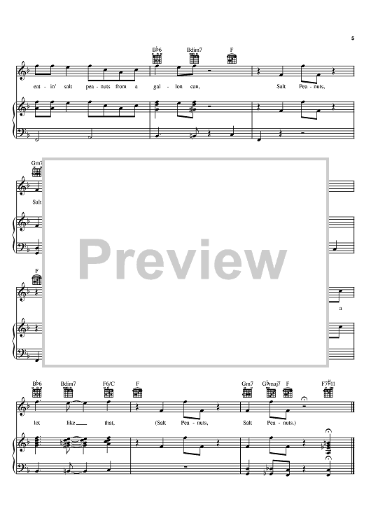 Digital Sheet Music for Salt Peanuts by Charlie Parker, Dizzy Gillespie, Kenny Clarke, Coleman Hawkins, Bud Powell scored for Piano/Vocal/Chords; id:380509