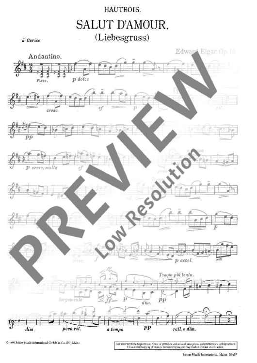 Digital Sheet Music for Salut d'Amour by Edward Elgar scored for Oboe And Piano; id:471394