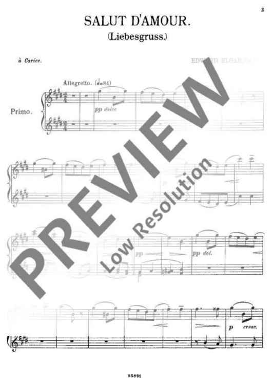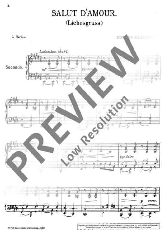Digital Sheet Music for Salut d'Amour by Edward Elgar scored for Piano (4 Hands); id:474360