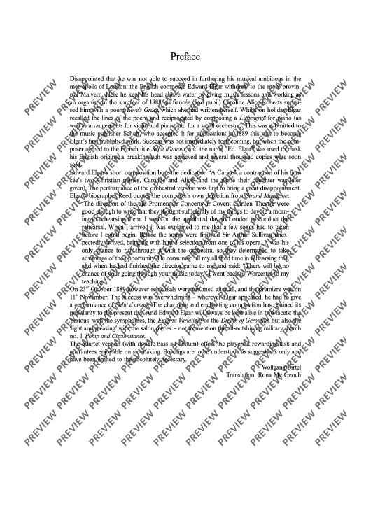 Elgar wrote his musical ‘billet doux’ in 1888 and dedicated it to his fiancée Caroline Alice Roberts. It was premiered in 1889 and helped to establish Elgar’s reputation as a composer. To this day the work has remained extremely popular and this arrangement for strings is guaranteed to lead to some very enjoyable music making.