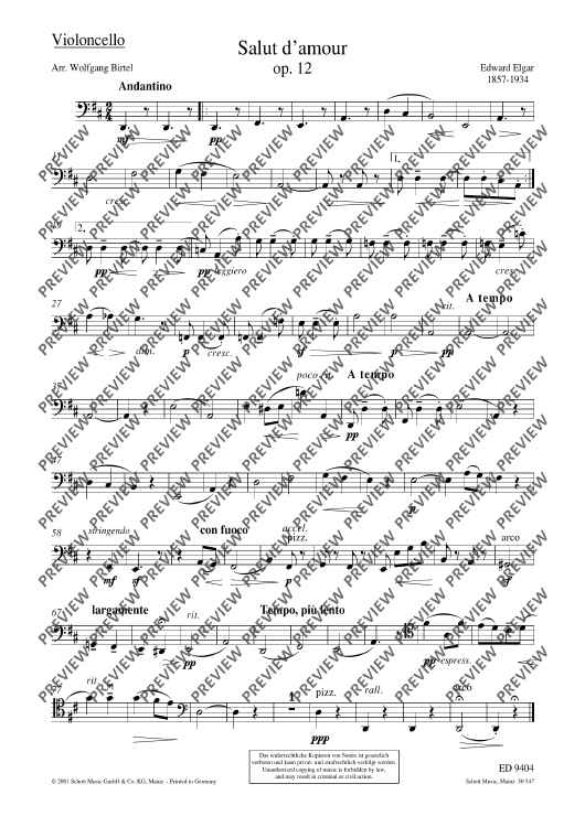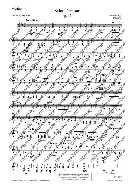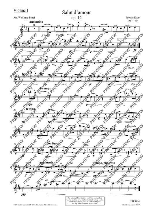 "Salut d'Amour - Score and Parts" Sheet Music by Edward Elgar