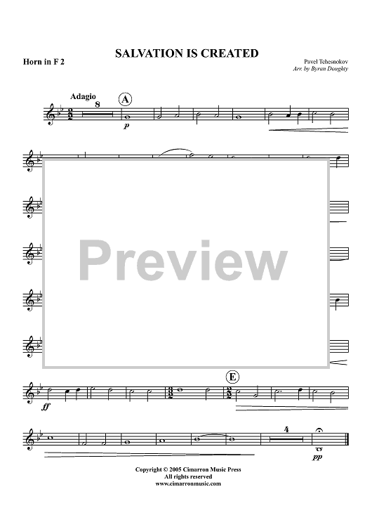 "Salvation is Created - Horn 2 in F" Sheet Music by Pavel Tchesnokov