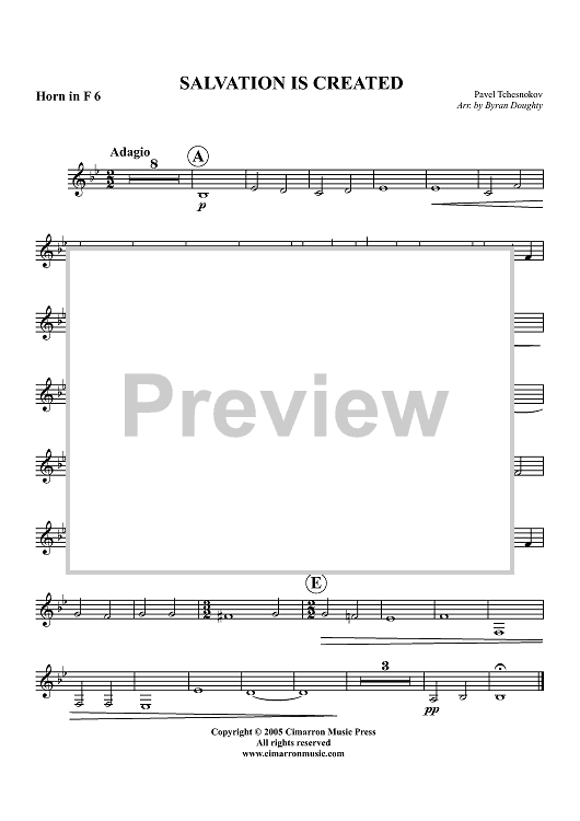 Digital Sheet Music for Salvation is Created - Horn 6 in F by Bryan Doughty, Pavel Tchesnokov scored for Horn Octet; id:317673