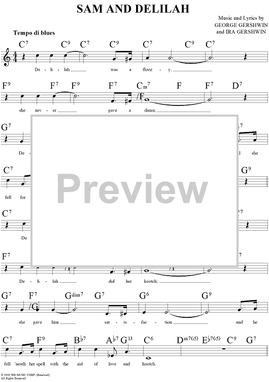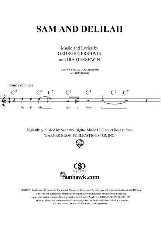 Digital Sheet Music for Sam and Delilah by , George Gershwin, Ira Gershwin scored for Lead Sheet; id:283719