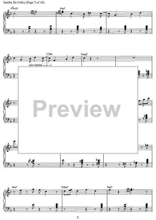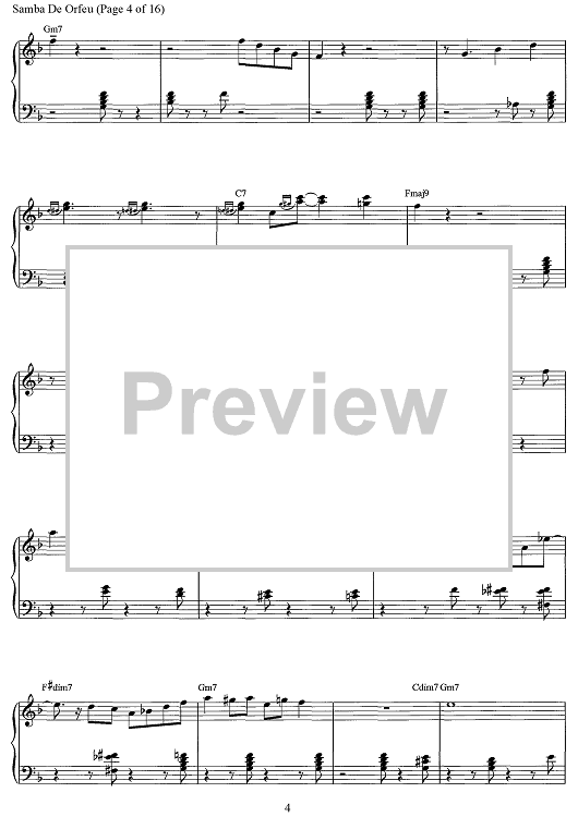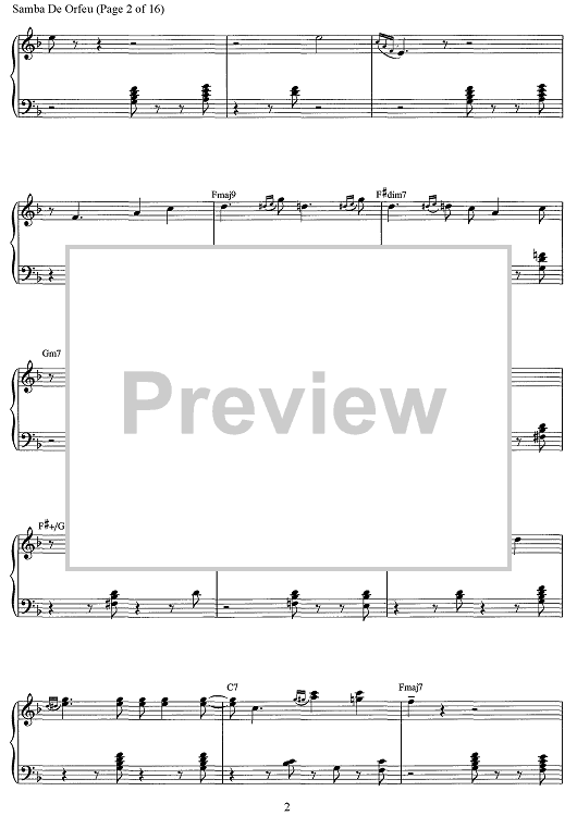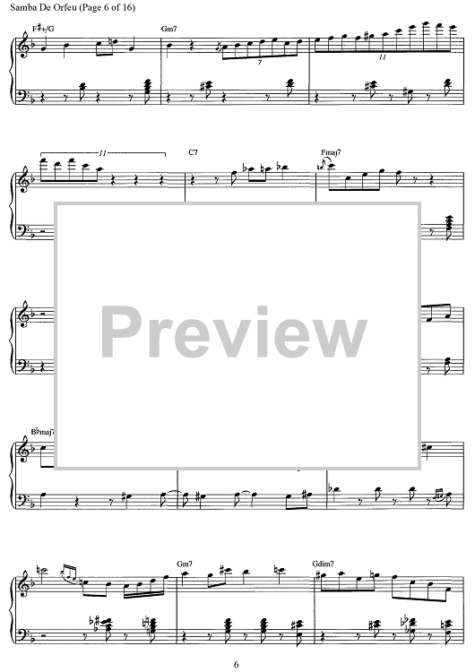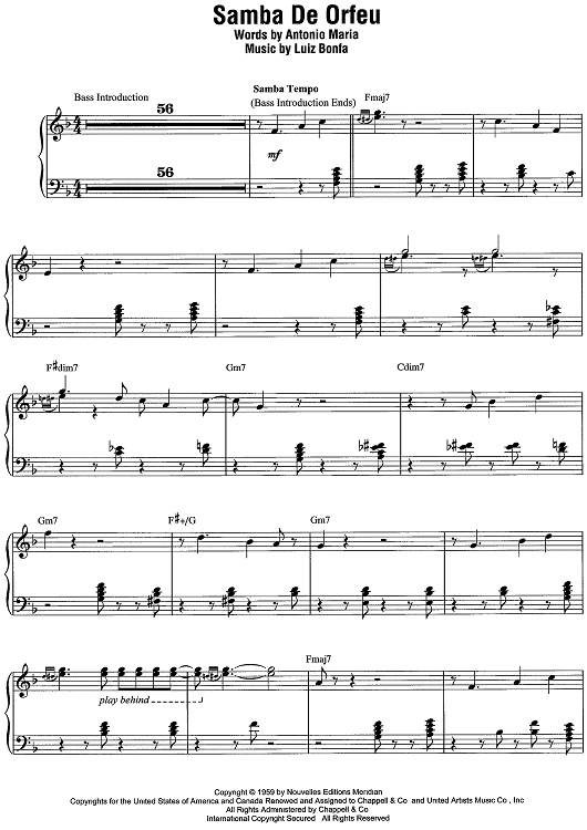Digital Sheet Music for Samba De Orfeu by Vince Guaraldi, Johnny Mercer, Antonio Maria scored for Piano Solo; id:468887