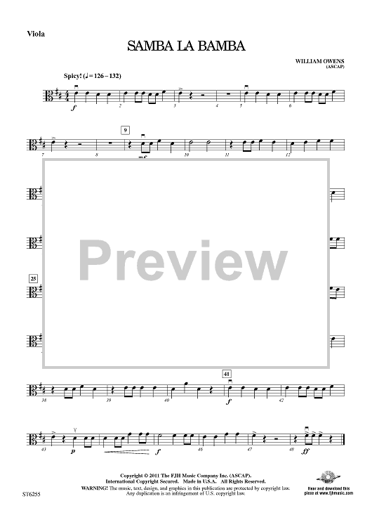 "Samba La Bamba - Viola" Sheet Music by William Owens