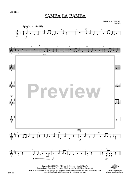 "Samba La Bamba - Violin 1" Sheet Music by William Owens
