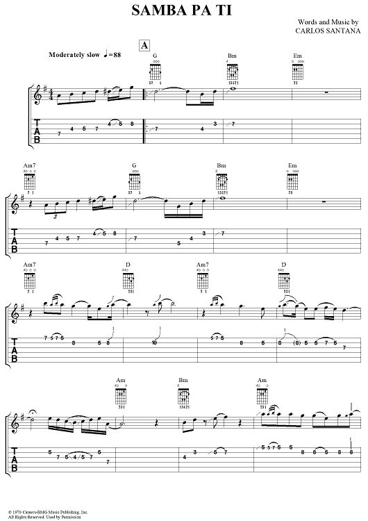 "Samba Pa Ti" Sheet Music by Carlos Santana