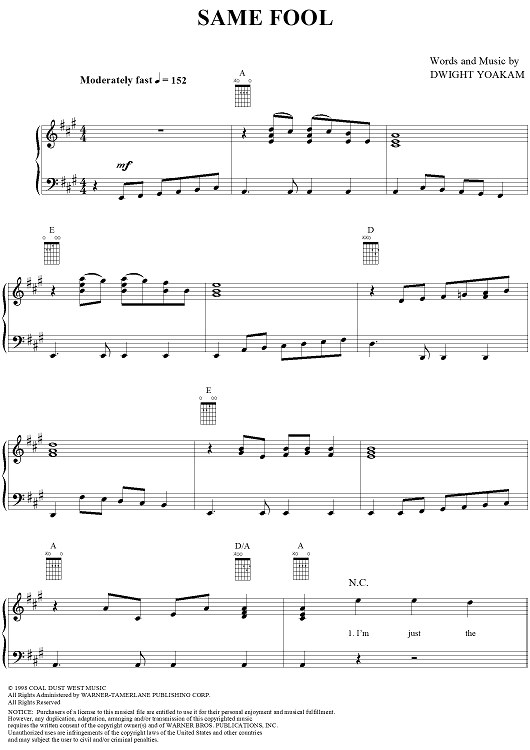 Digital Sheet Music for Same Fool by Dwight Yoakam scored for Piano/Vocal/Chords; id:262739