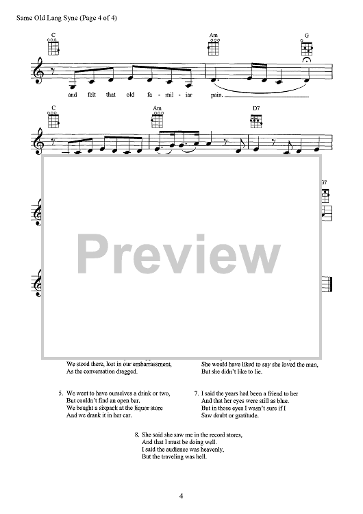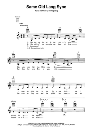 Digital Sheet Music for Same Old Lang Syne by Dan Fogelberg scored for Ukulele/Vocal; id:467767