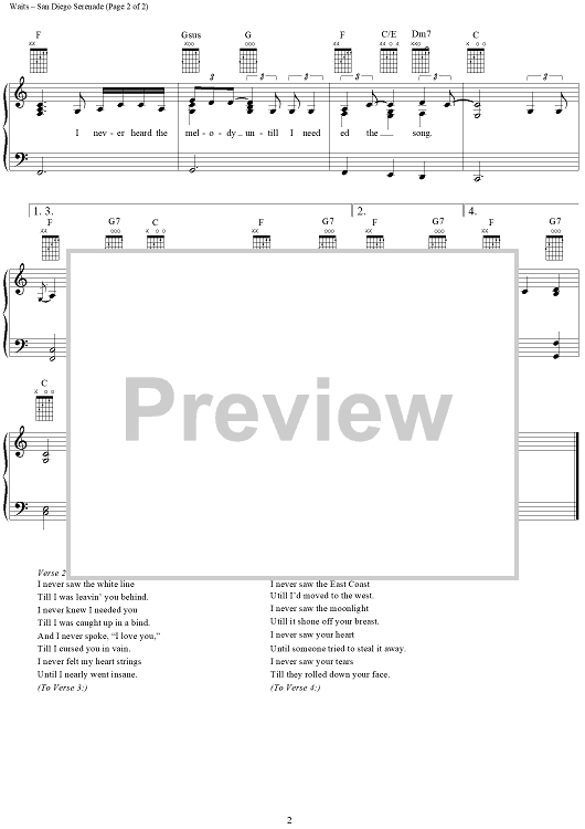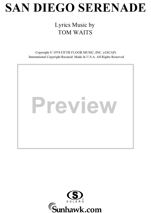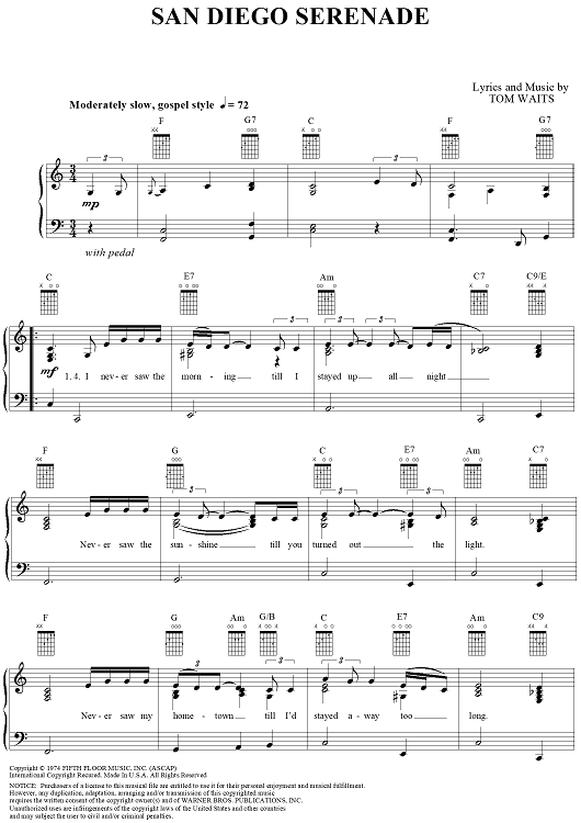 Digital Sheet Music for San Diego Serenade by Tom Waits, Nanci Griffith scored for Piano/Vocal/Chords; id:120370
