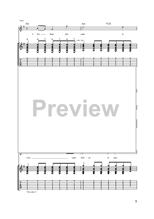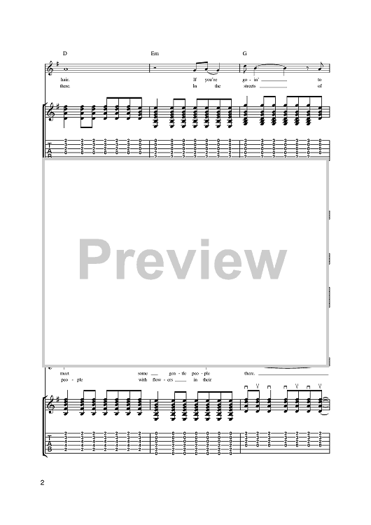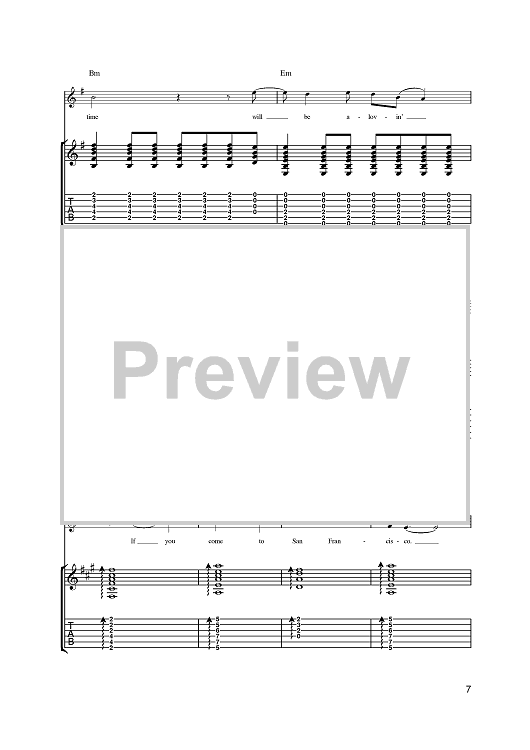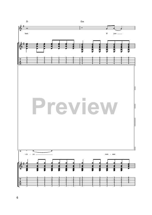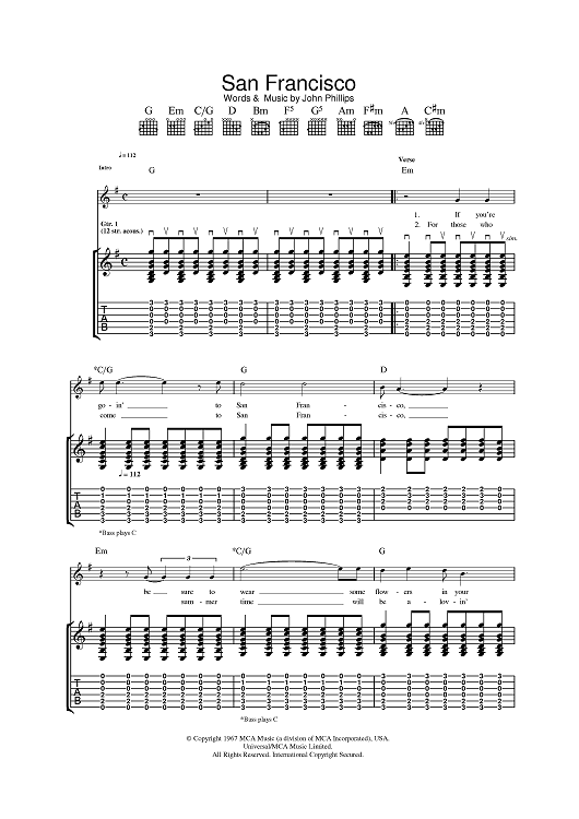 Digital Sheet Music for San Francisco (Be Sure To Wear Some Flowers In Your Hair) by Scott McKenzie, John Phillips scored for Guitar Tab; id:392029