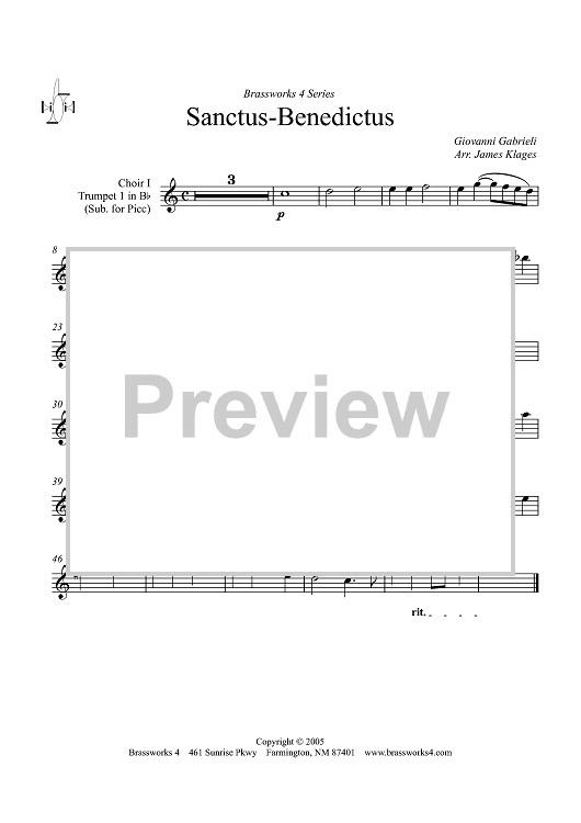 Digital Sheet Music for Sanctus-Benedictus - Choir 1, Trumpet 1 by Giovanni Gabrieli, James Klages scored for Trumpet Choir; id:317933