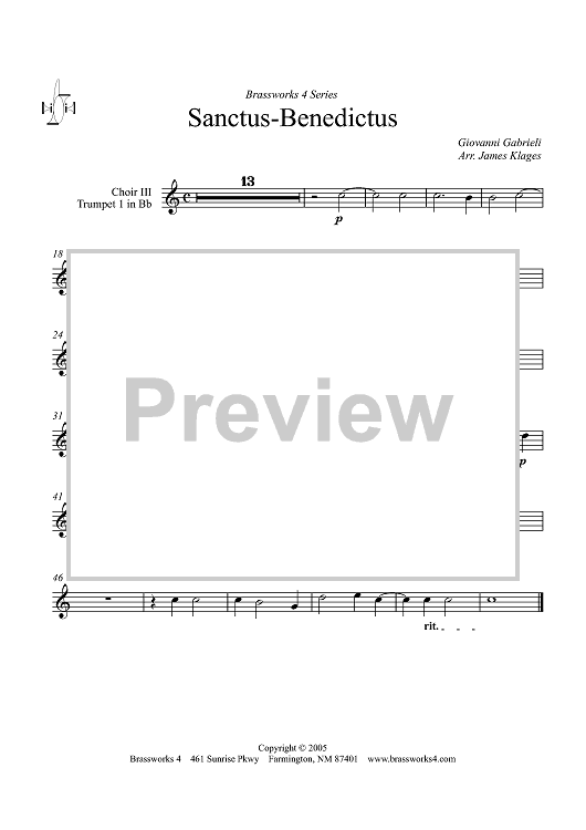 Digital Sheet Music for Sanctus-Benedictus - Choir 3, Trumpet 1 by Giovanni Gabrieli, James Klages scored for Trumpet Choir; id:317945