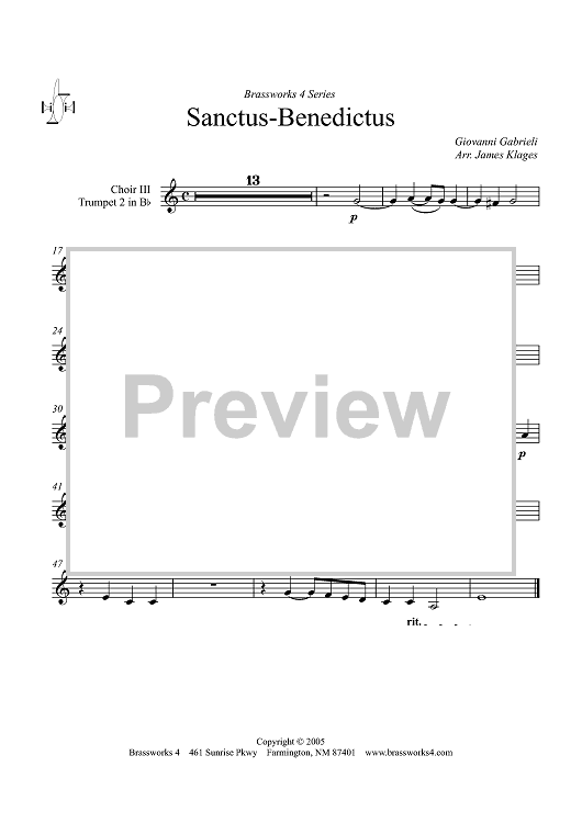 Digital Sheet Music for Sanctus-Benedictus - Choir 3, Trumpet 2 by Giovanni Gabrieli, James Klages scored for Trumpet Choir; id:317946