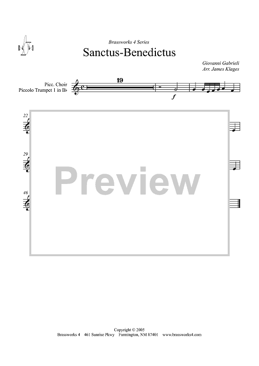 Digital Sheet Music for Sanctus-Benedictus - Piccolo Choir, Picc Tpt 1 by Giovanni Gabrieli, James Klages scored for Trumpet Choir; id:317941