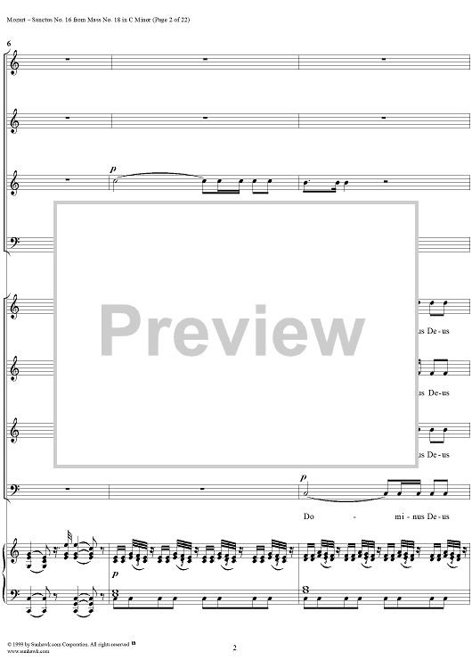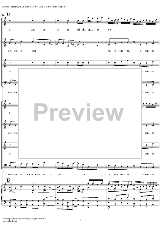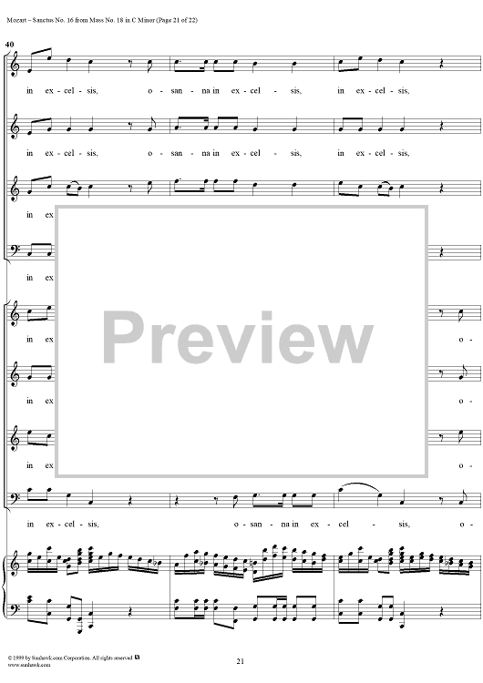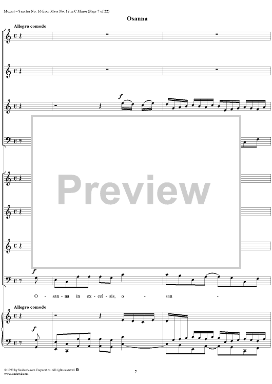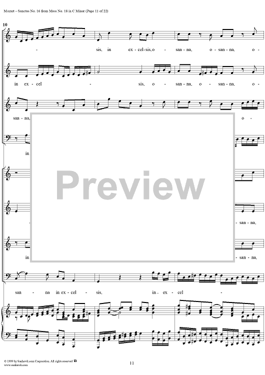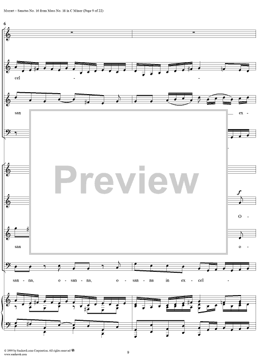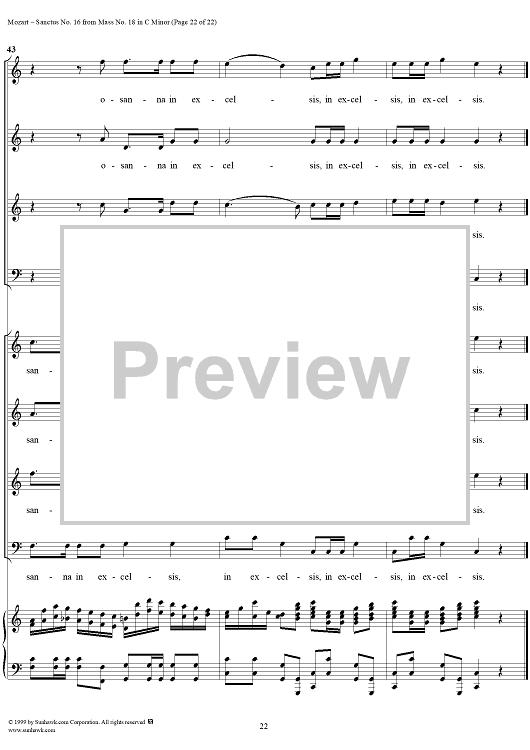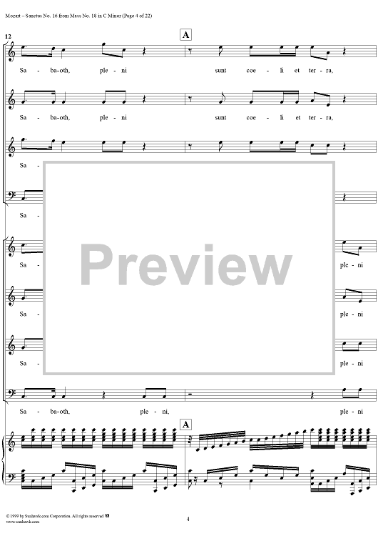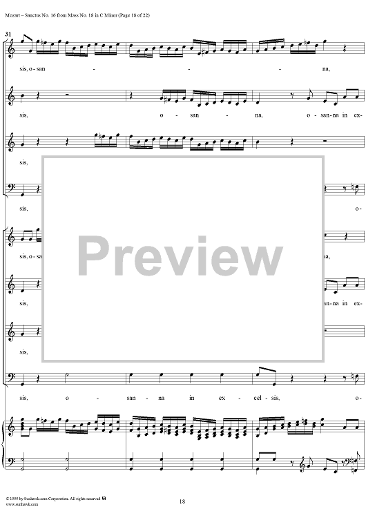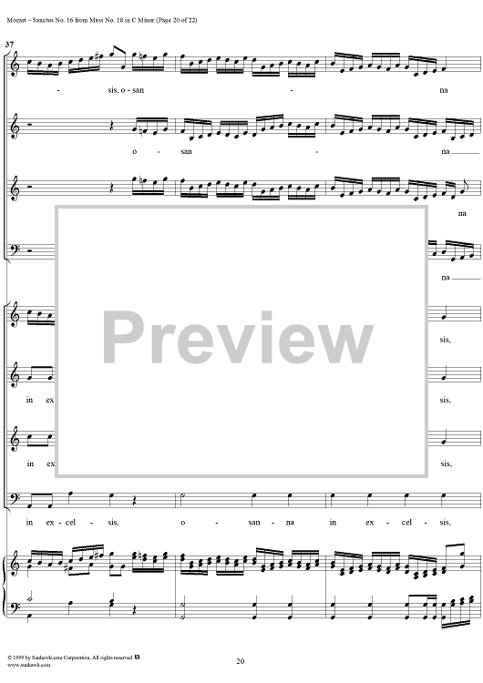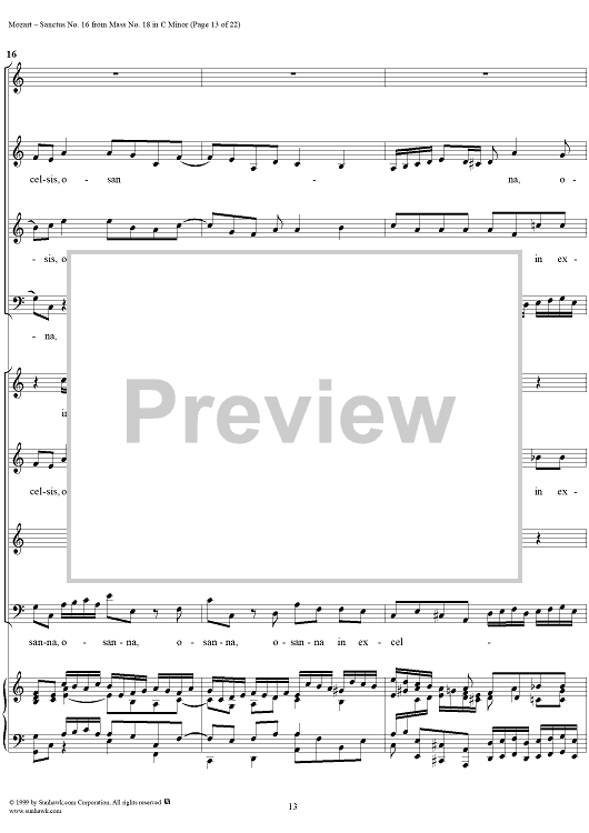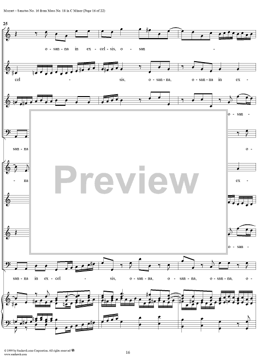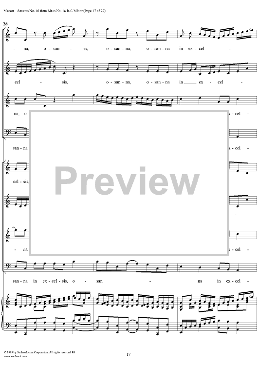 Digital Sheet Music for Sanctus - No. 16 from Mass no. 18 in C minor ("Great") - K427 (K417a) by Wolfgang Amadeus Mozart scored for Vocal Score; id:253097