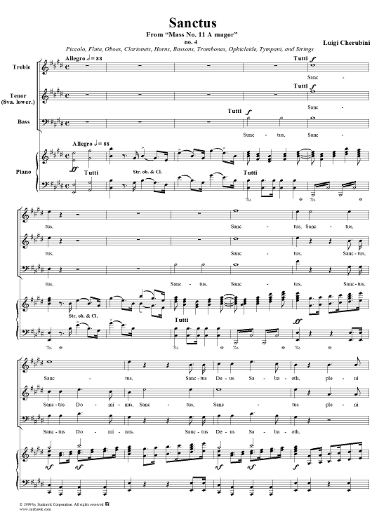 "Sanctus - No. 5 from "Mass No. 11 in A major"" Sheet Music by Luigi Cherubini
