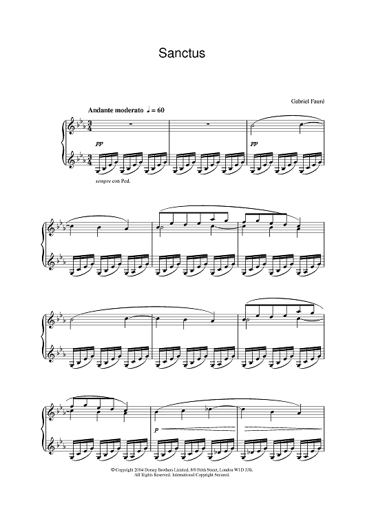 Digital Sheet Music for Sanctus by Gabriel Fauré scored for Piano; id:382790