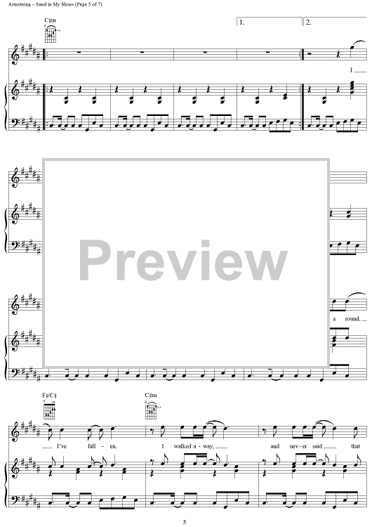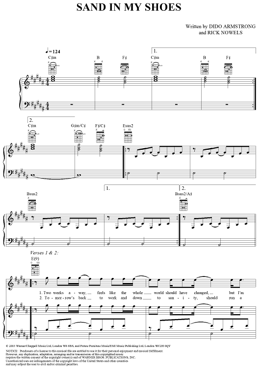 Digital Sheet Music for Sand in My Shoes by Rick Nowels, Dido Armstrong, Dido scored for Piano/Vocal/Chords; id:305311