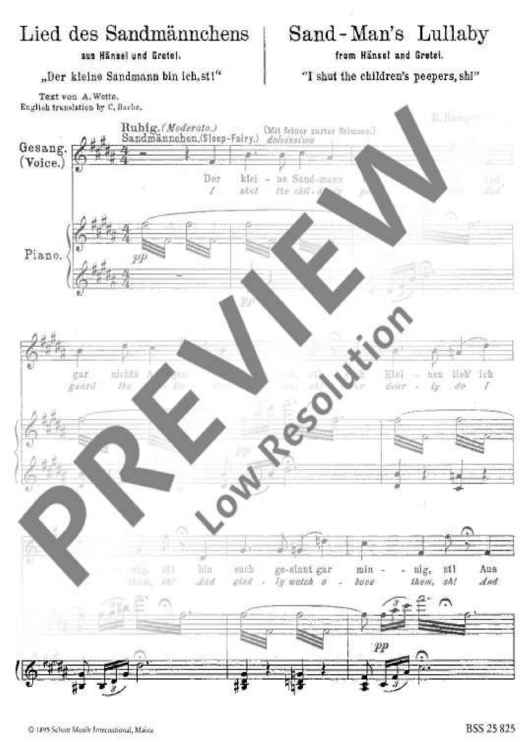 Digital Sheet Music for Sand-Man's Lullaby by Engelbert Humperdinck scored for Low Voice And Piano; id:471393