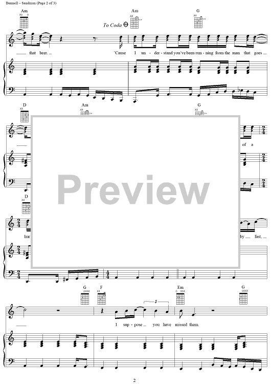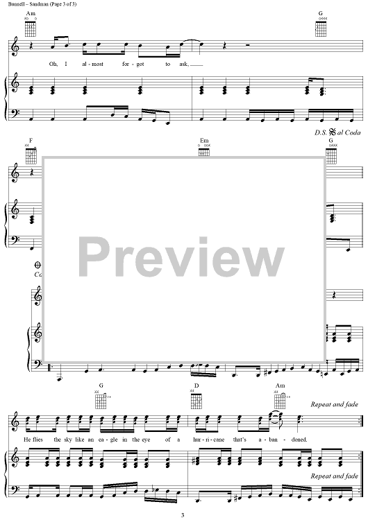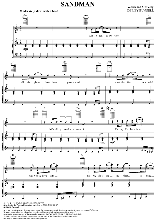 Digital Sheet Music for Sandman by America, Dewey Bunnell scored for Piano/Vocal/Chords; id:234623