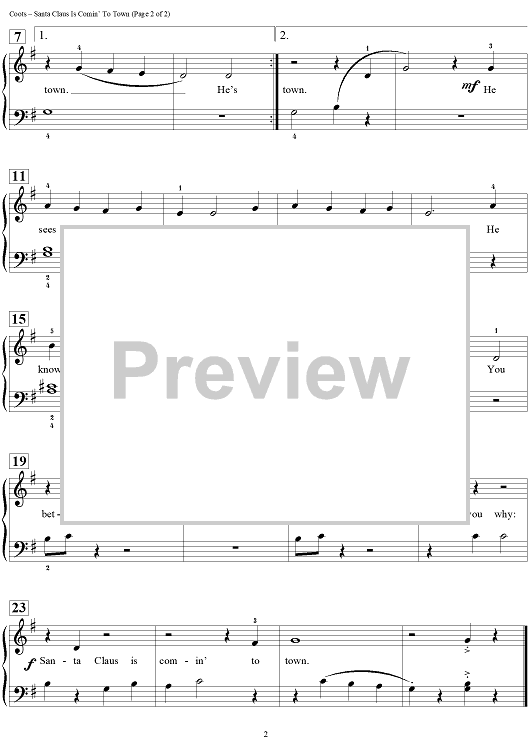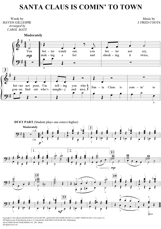 Digital Sheet Music for Santa Claus Is Comin' To Town by Haven Gillespie, J. Fred Coots, Carol Matz scored for Piano; id:453444