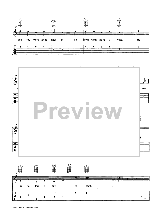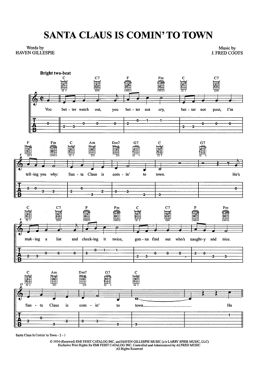 Digital Sheet Music for Santa Claus Is Comin' To Town by Haven Gillespie, J. Fred Coots scored for Easy Guitar Tab/Vocal/Chords; id:463679