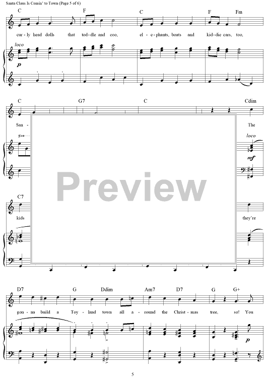 Digital Sheet Music for Santa Claus Is Comin' to Town by Haven Gillespie, J. Fred Coots scored for Piano/Vocal/Chords; id:95222