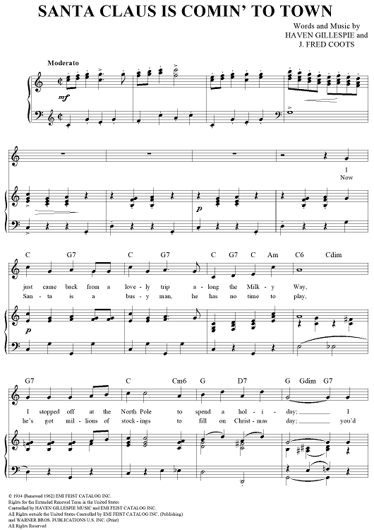 "Santa Claus Is Comin' to Town" Sheet Music by Haven Gillespie