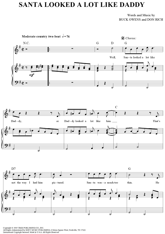 Digital Sheet Music for Santa Looked a Lot like Daddy by Garth Brooks, Buck Owens, Don Rich scored for Piano/Vocal/Chords; id:361667