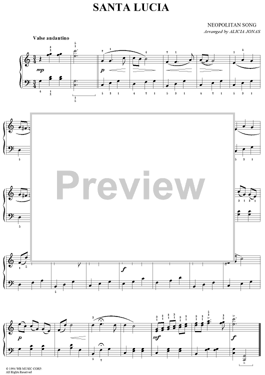 Digital Sheet Music for Santa Lucia by Alicia Jonas, Traditional scored for Piano Solo; id:261639