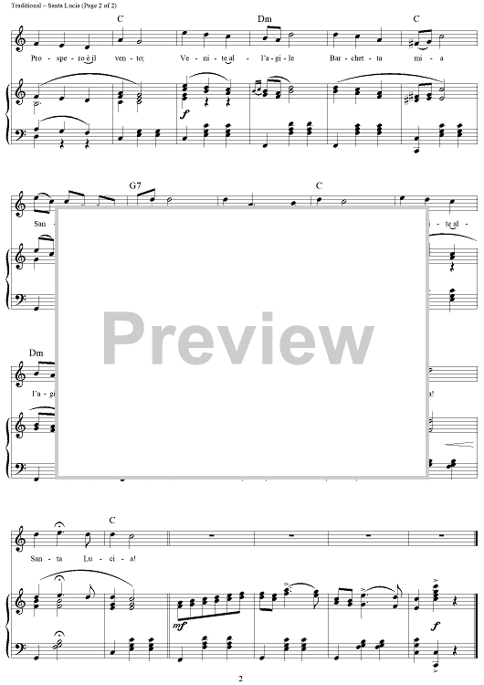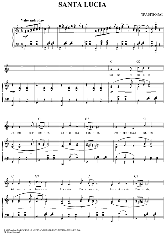 Digital Sheet Music for Santa Lucia by Traditional scored for Piano/Vocal/Chords; id:289441