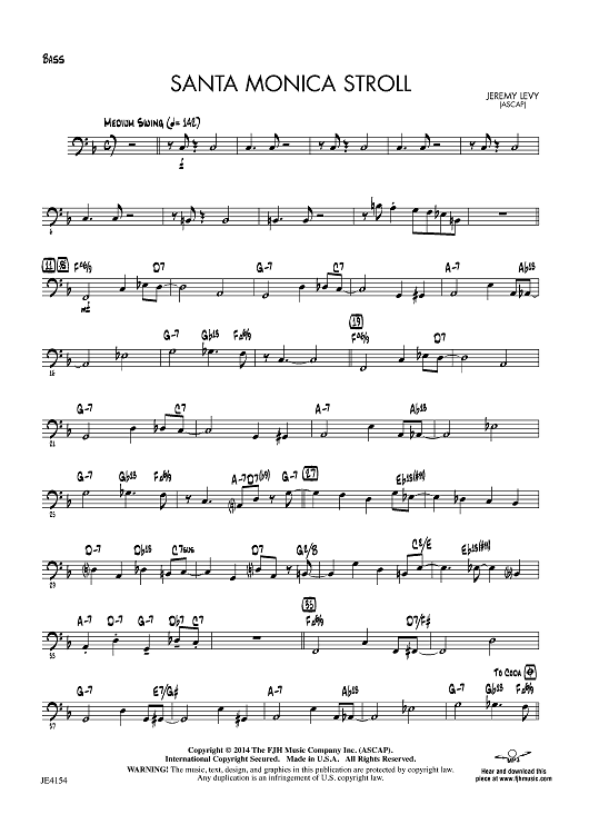 "Santa Monica Stroll - Bass" Sheet Music by Jeremy Levy