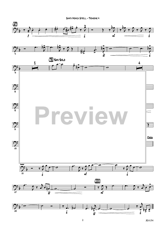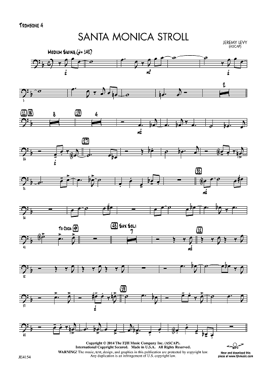 Digital Sheet Music for Santa Monica Stroll - Trombone 4 by Jeremy Levy scored for Jazz Ensemble; id:446632