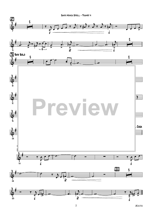 Digital Sheet Music for Santa Monica Stroll - Trumpet 4 by Jeremy Levy scored for Jazz Ensemble; id:446628
