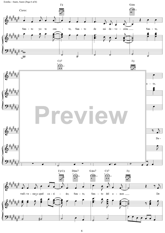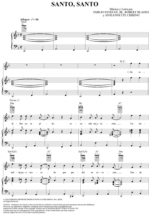 Digital Sheet Music for Santo, Santo by Gloria Estefan, Robert D. Blades, Angie Chirino, Emilio Estefan Jr., Só Pra Contrariar scored for Piano/Vocal/Chords; id:270573