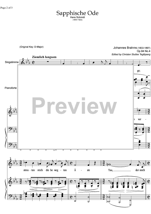 Digital Sheet Music for Sapphische Ode Op.94 No. 4 by , Johannes Brahms scored for Mezzo-soprano or Baritone/Piano; id:338140