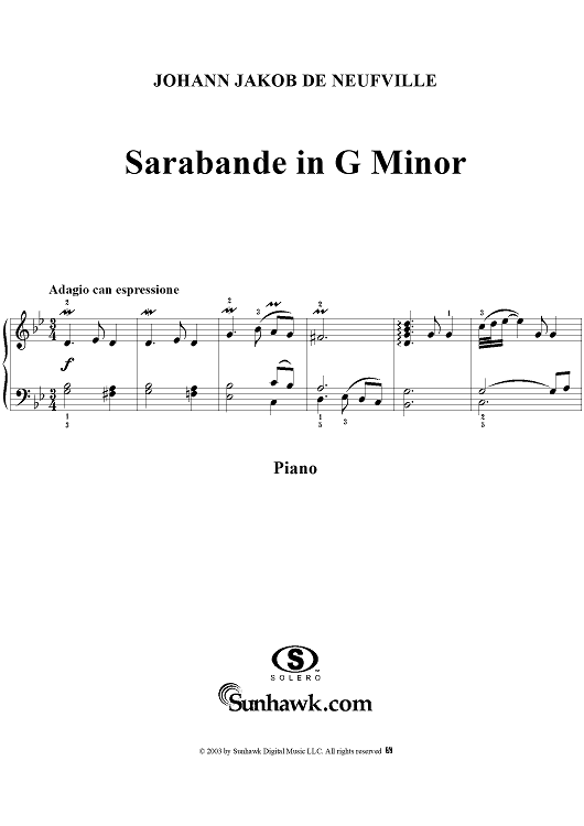 Digital Sheet Music for Sarabande in G Minor by Johann Jakob Neufville scored for Piano Solo; id:294831