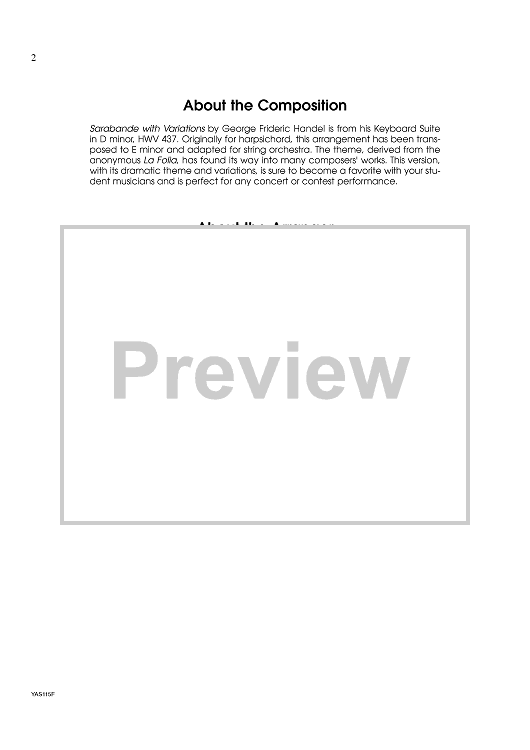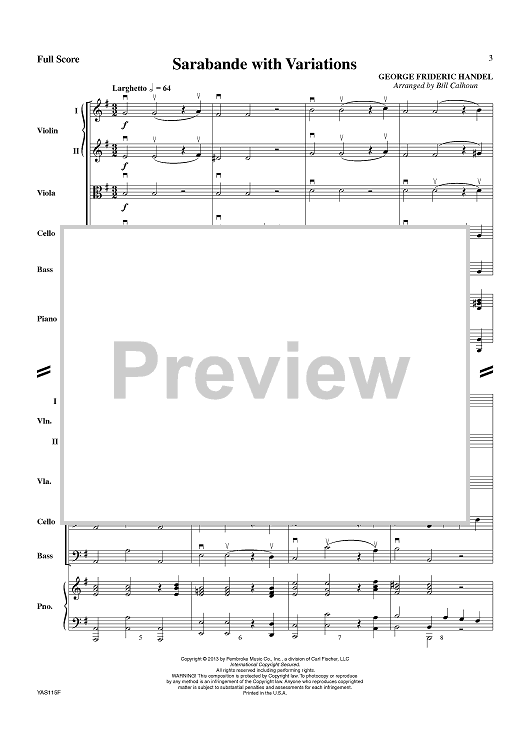 Digital Sheet Music for Sarabande with Variations - Score by George Frideric Handel, Bill Calhoun scored for String Orchestra; id:435110