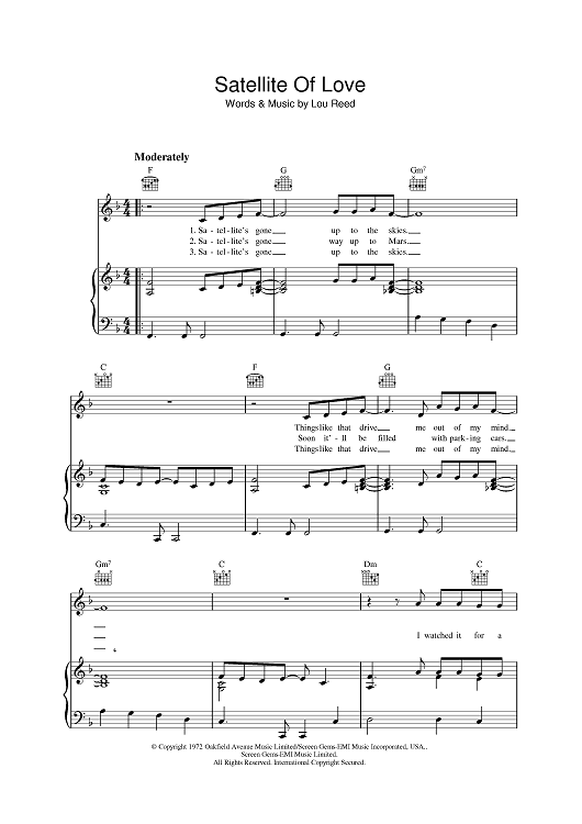 Digital Sheet Music for Satellite Of Love by Lou Reed scored for Piano/Vocal/Chords; id:398160